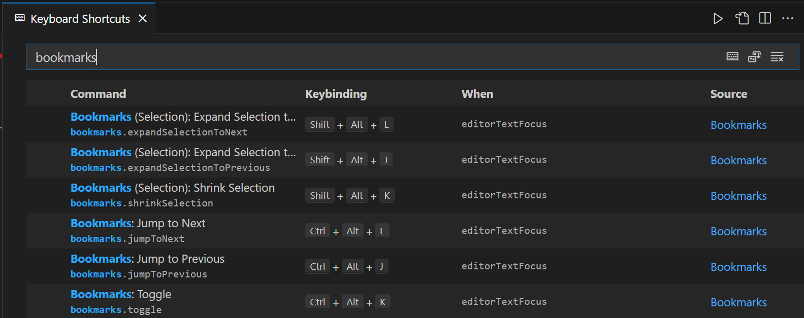 Ctrl+K, Ctrl+S 을 순차적으로 입력하면 단축키 수정 화면이 열린다!